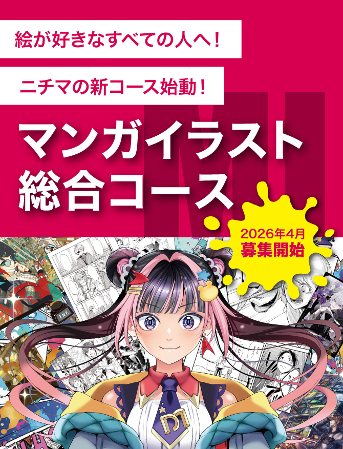日本デザイナー芸術学院・日本マンガ芸術学院は【2025年12月27日(土)から2026年1月4日(日)】までお休みをいただきます。 この期間のお問い合わせや資料請求には通常よりお時間をいただきます。 ご迷惑をおかけいたしますが、ご理解の程よろしくお願いいたします。